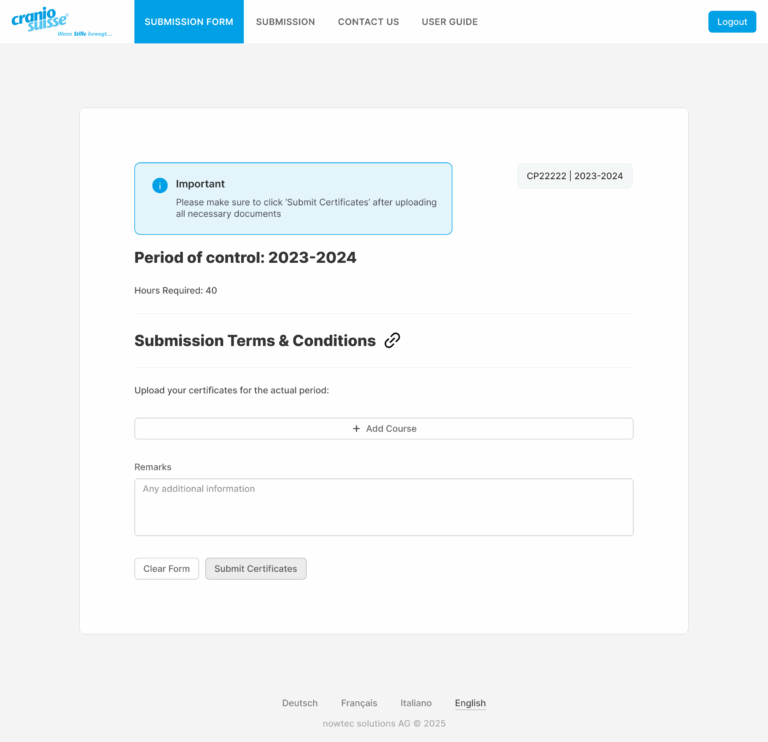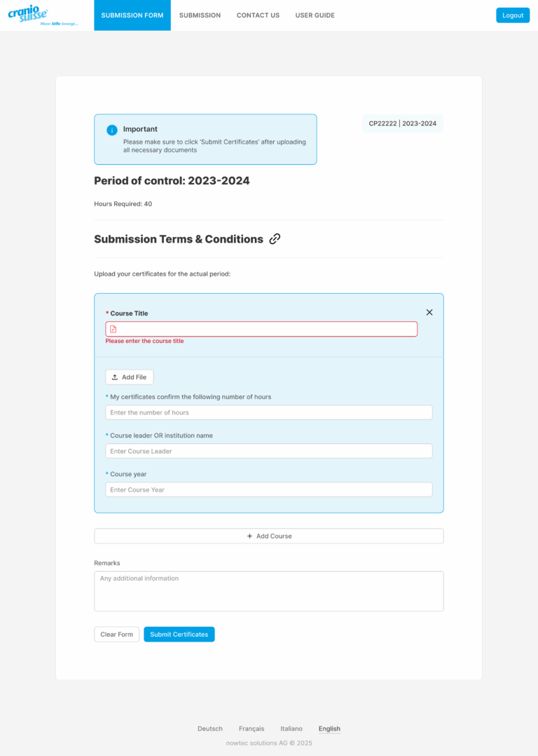 As part of its quality assurance measures, Cranio Suisse® requires members to regularly submit evidence of their continuing education. Until recently, this process was entirely manual: every two years, members needed to collect, print, and mail their certificates and records. Reviewing all these documents proved extremely labor-intensive, each one had to be checked manually, recorded in the CRM, and a confirmation sent by email. This not only consumed significant staff resources, but the process also became increasingly unsustainable as membership grew. Additionally, handling sensitive personal data demanded strict data protection and privacy compliance.